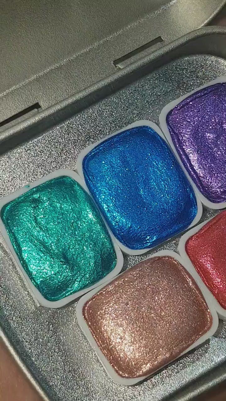 6 Handmade Metallic Watercolour Paints - Quarter Pans