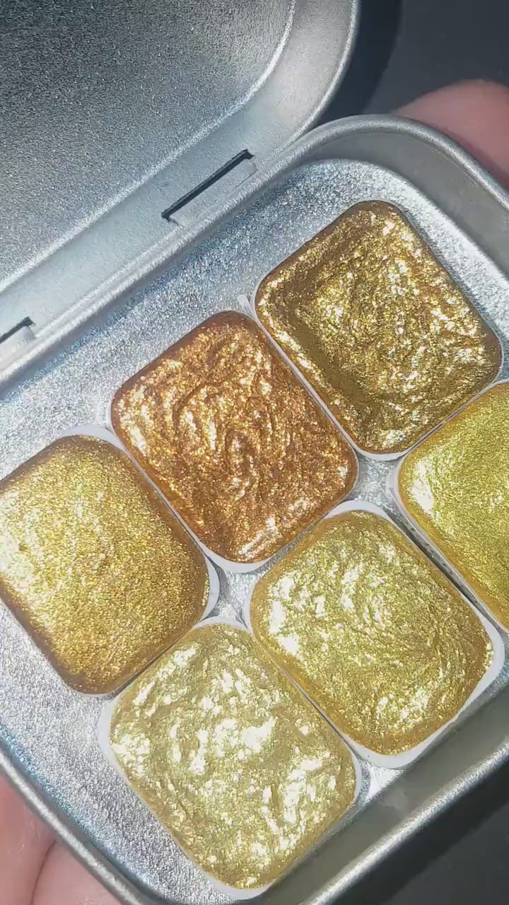 Golden Series * Quarter Pan* Gold Chrome Watercolour Paint - Artist Palette Set - Handmade Metallic Paint