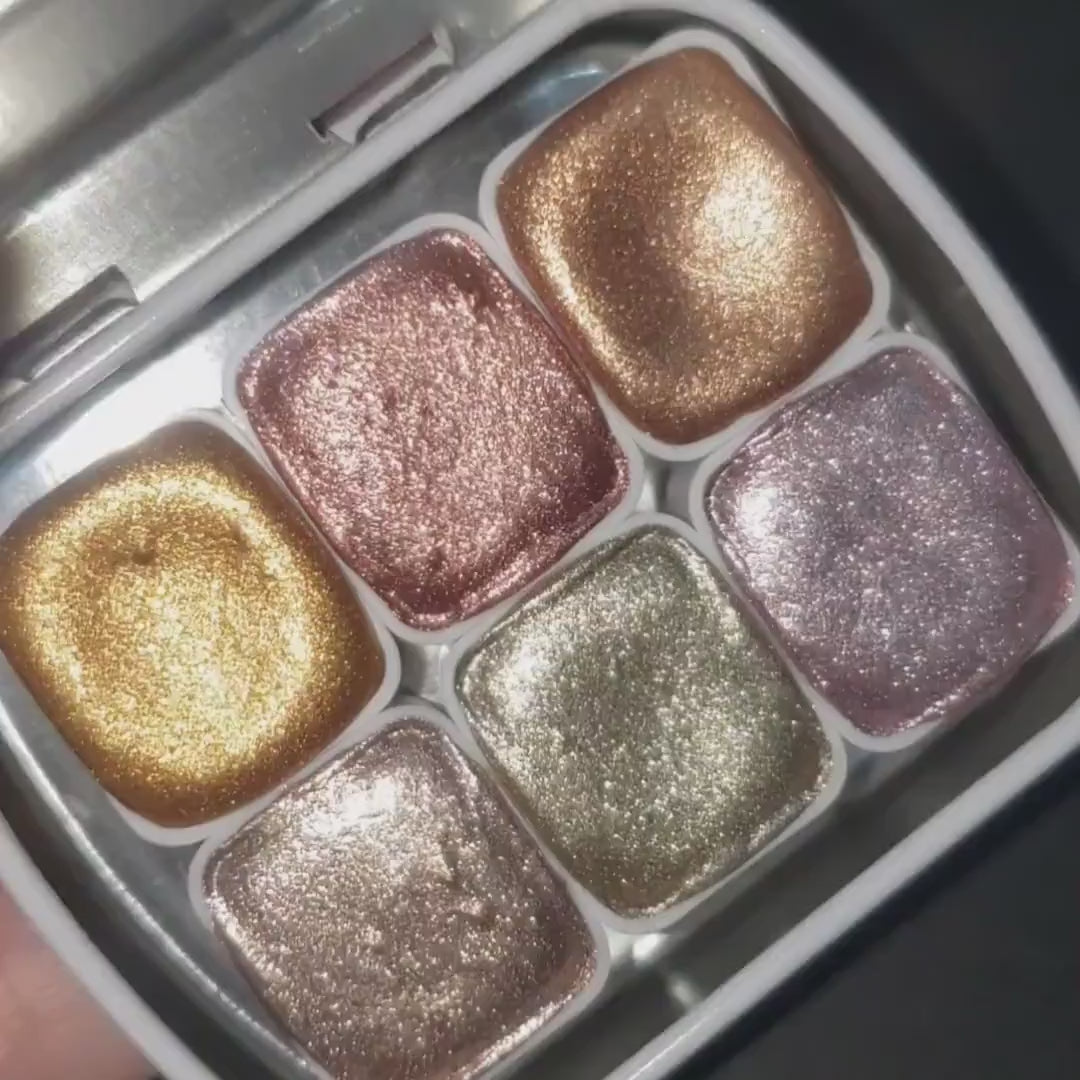 6 Handmade Metallic Watercolour Paints - Half Pans