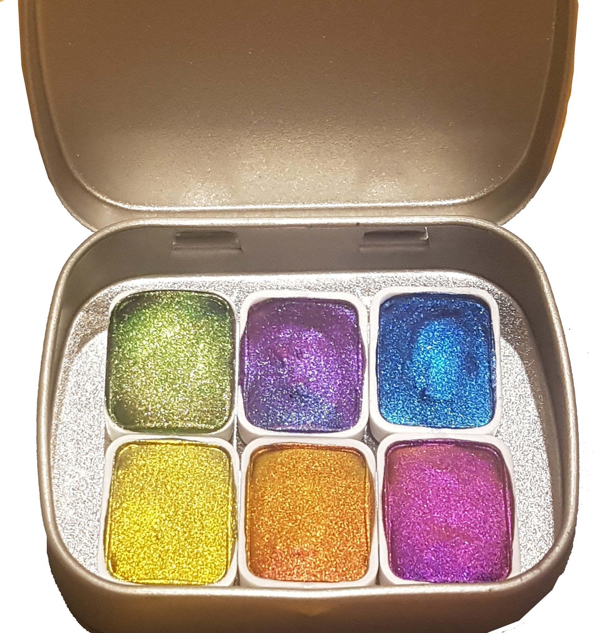 6 Handmade Metallic Watercolour Paints - Quarter Pans